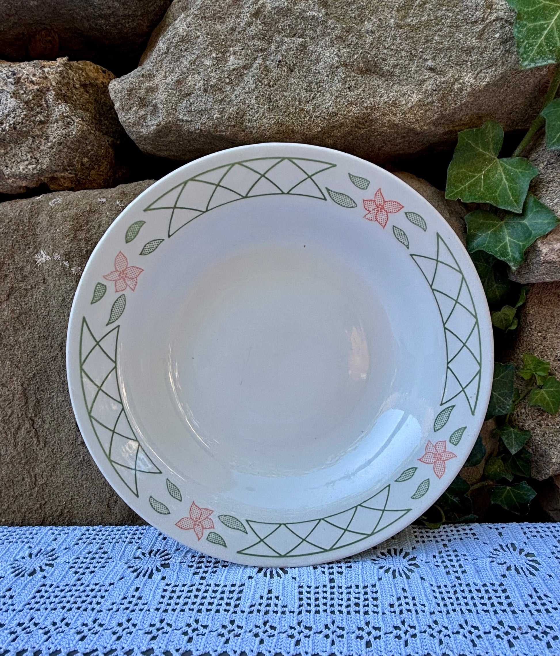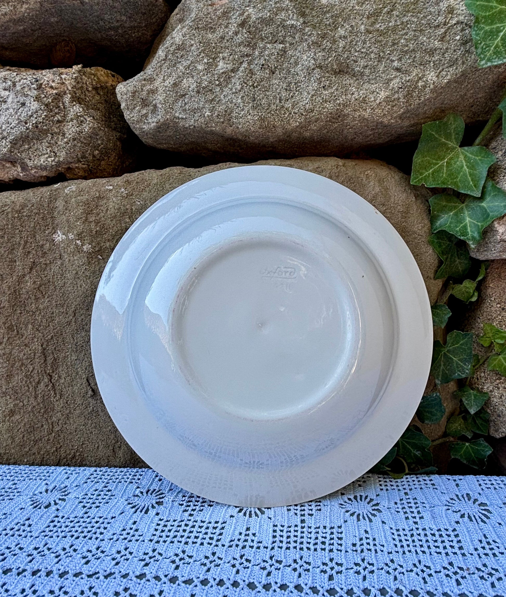 Assiette modèle Brazil signée Oxford, faïence anglaise au décor géométrique et floral