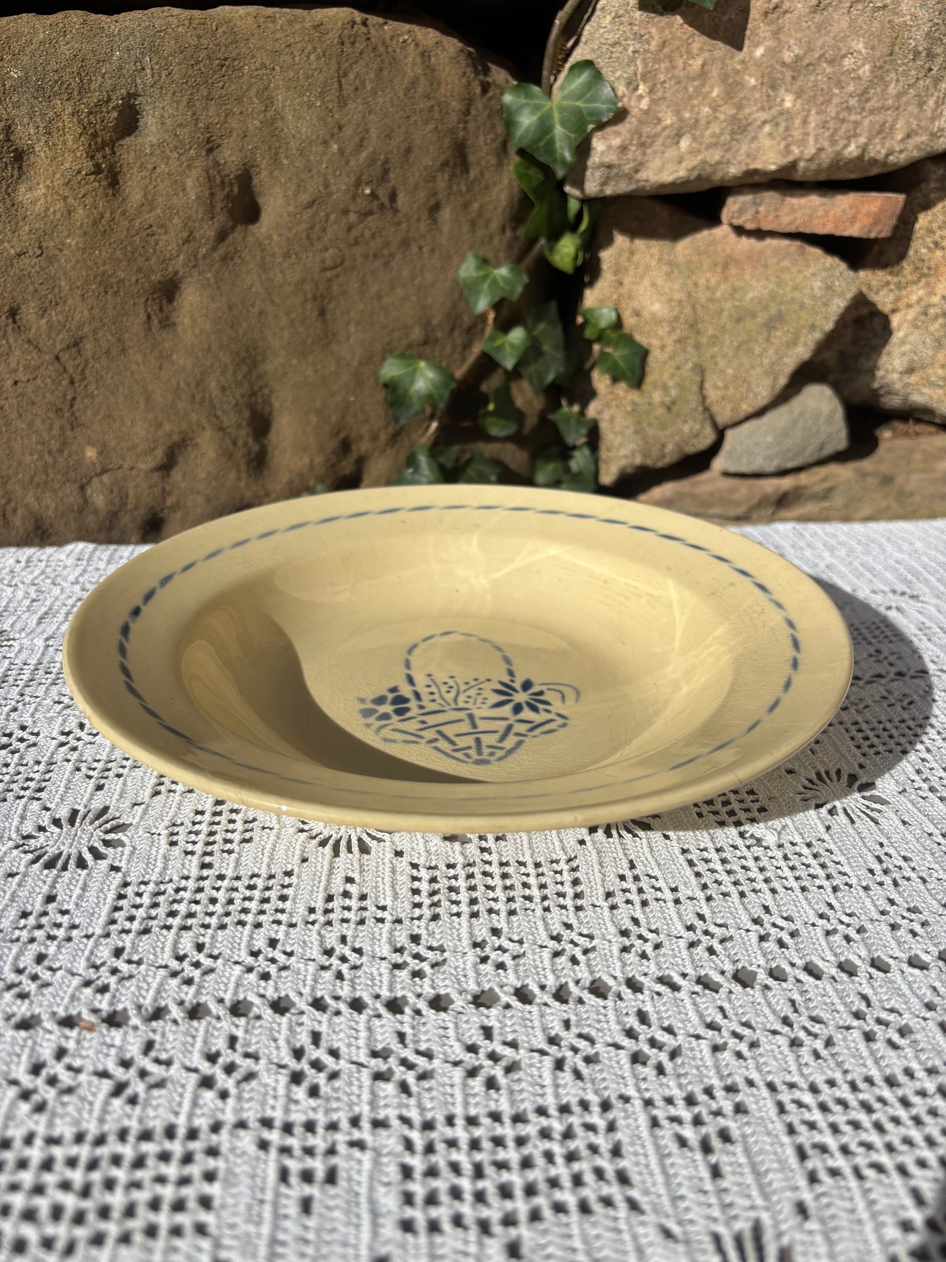Assiette creuse vintage signée HBCM pour Hyppolyte Boulenger Creil & Montereau, modèle Paradis
