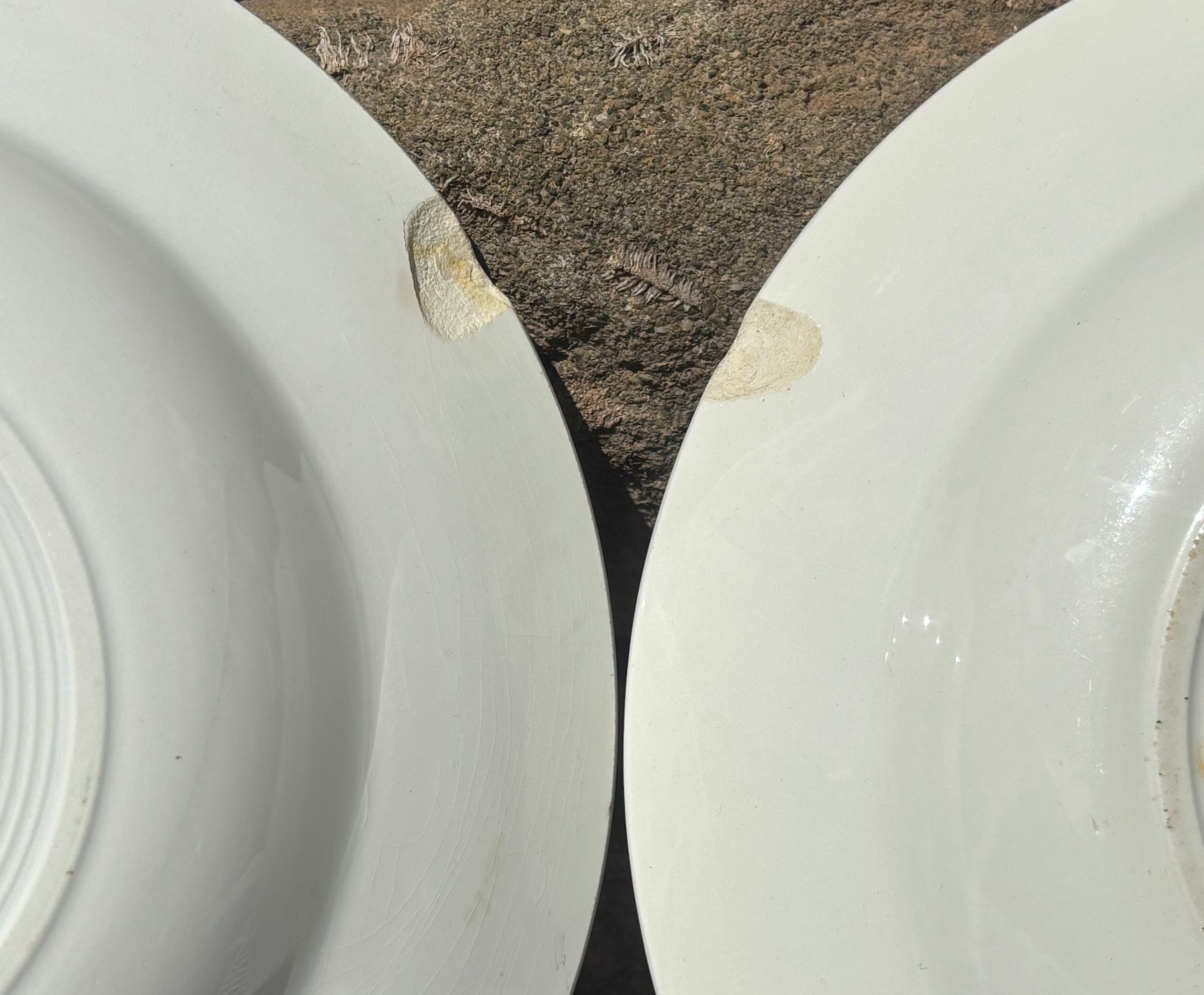 Une petite ébréchure sur le dessous de chacune des assiettes : voir photos, invisibles de face