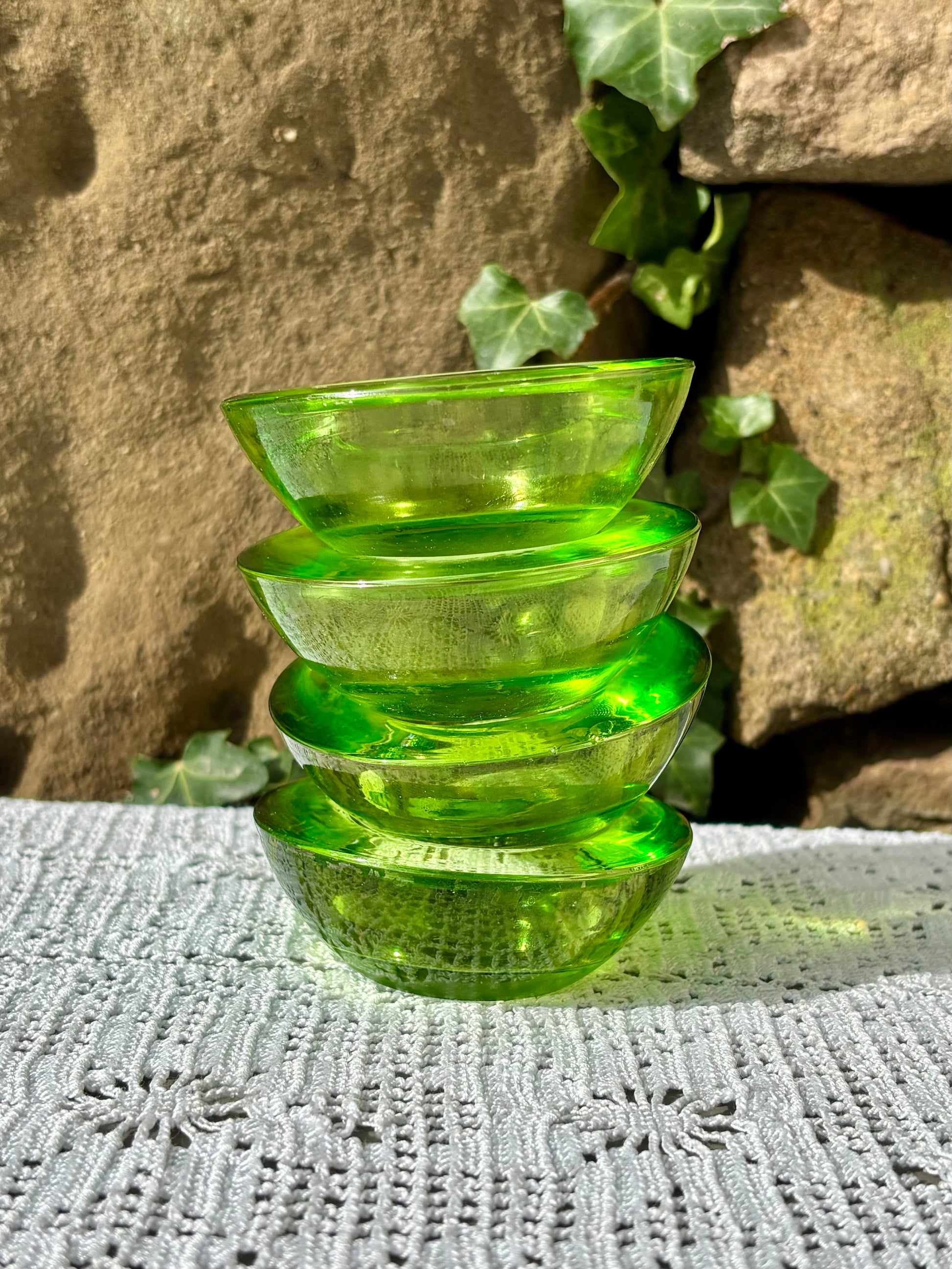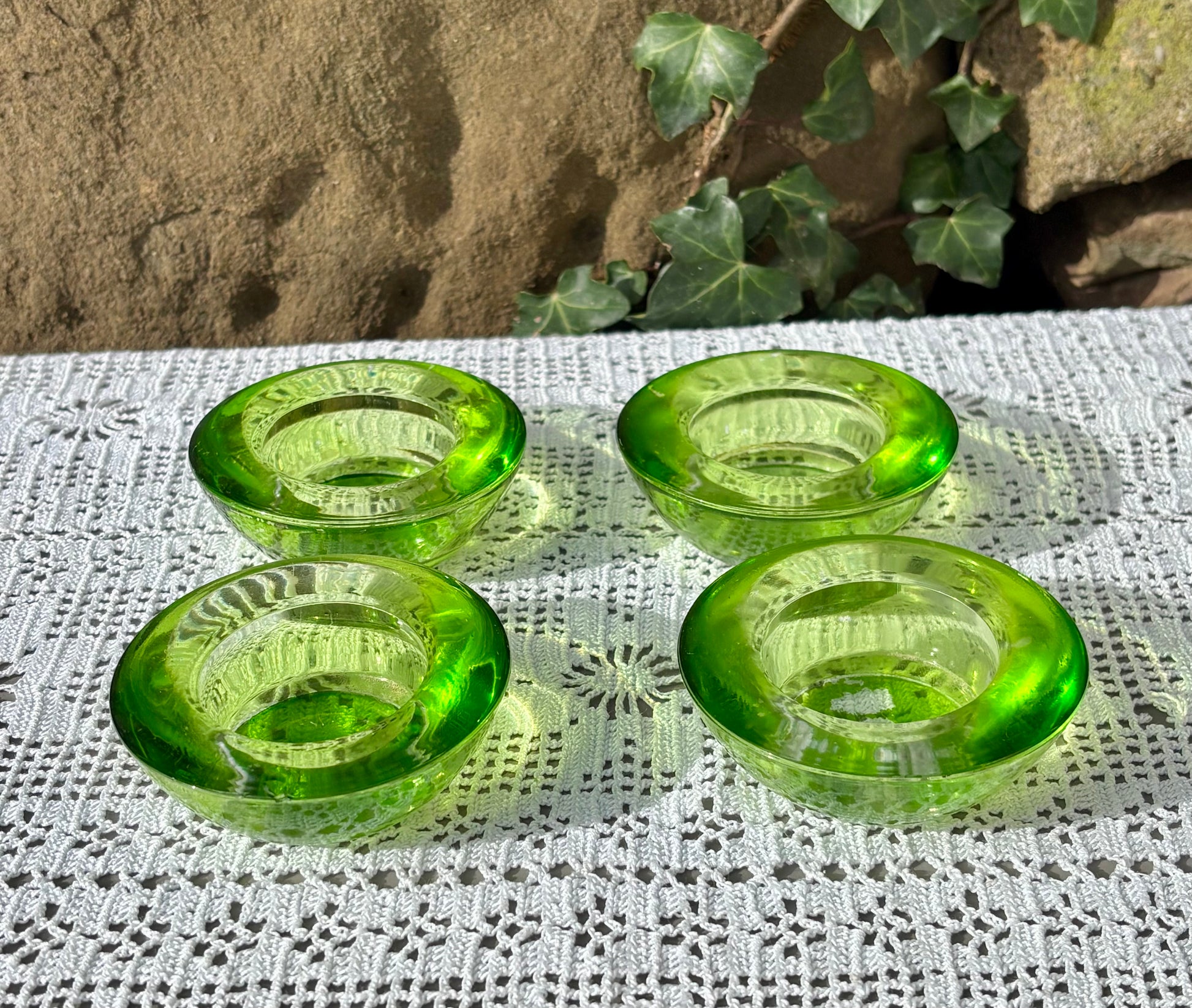 Ensemble de 4 bougeoirs photophores en verre vert