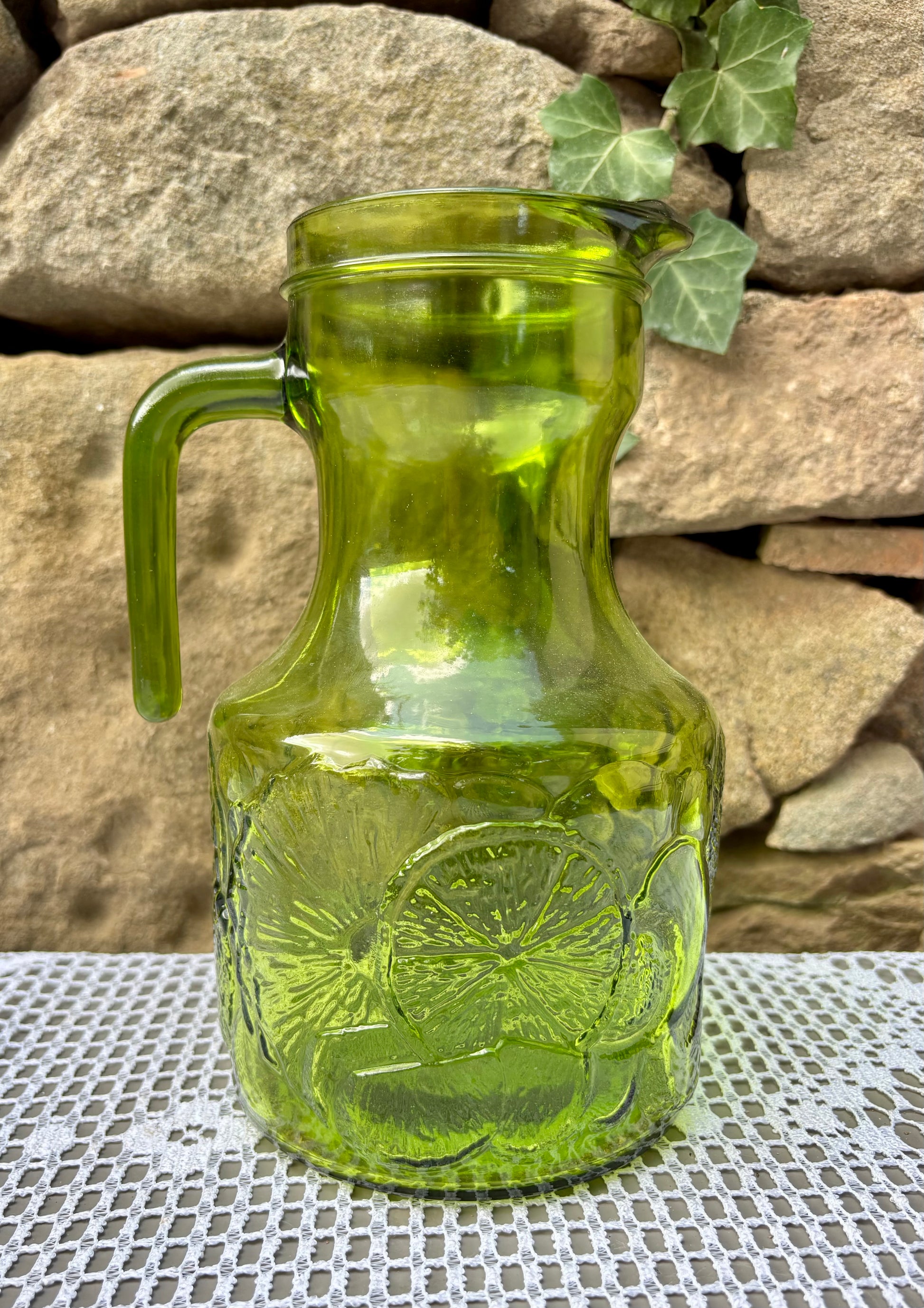 Pichet vert décor en relief