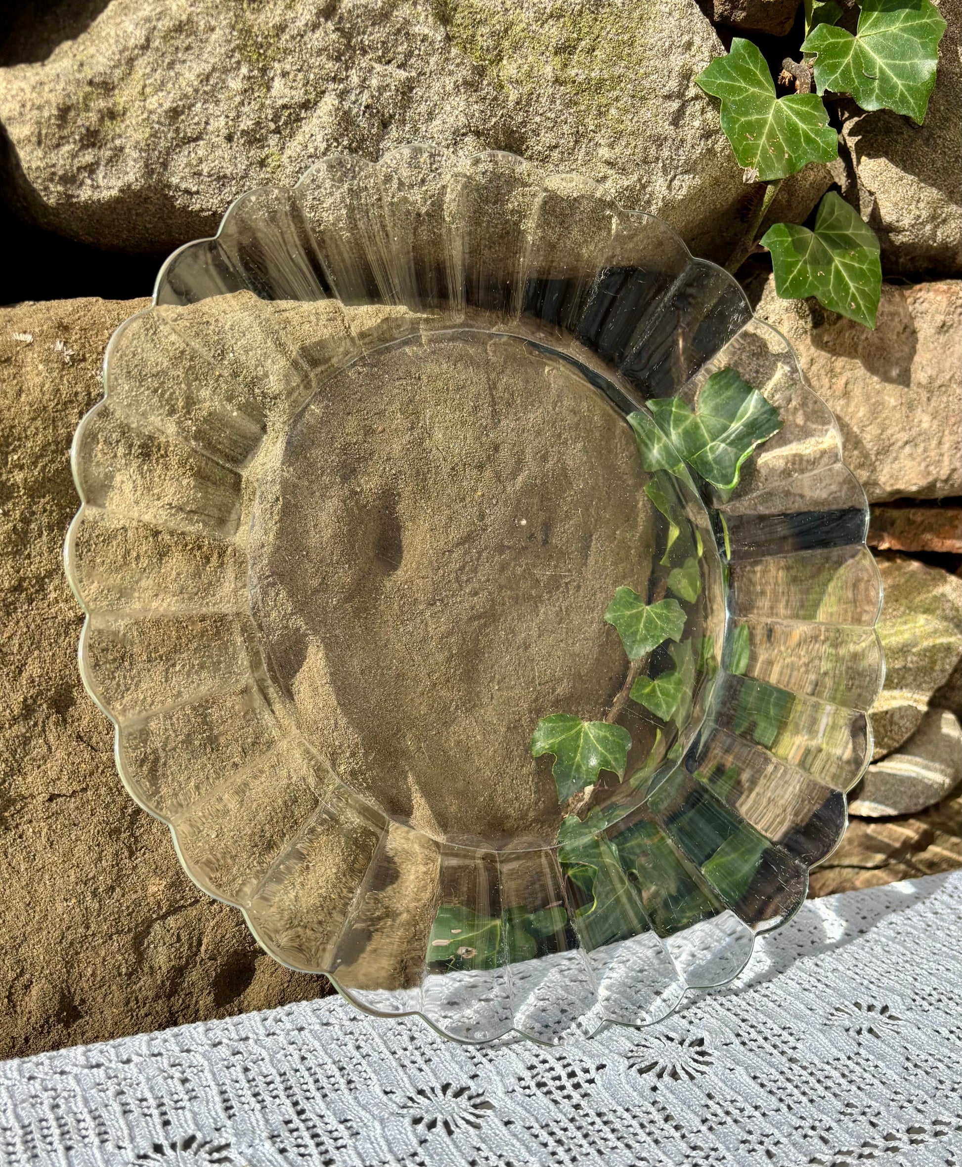 Plat vintage Duralex, modèle Marguerite, en verre transparent