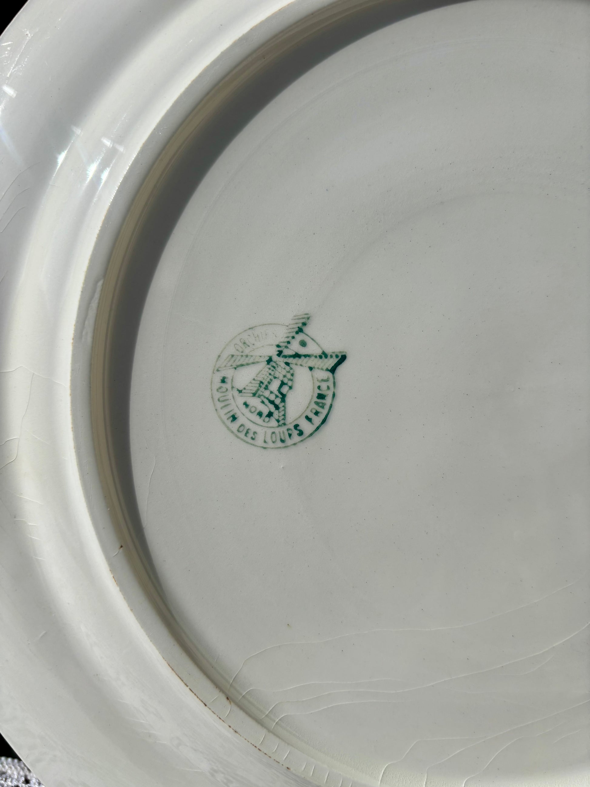 Plat rond vintage signé Orchies Moulin des Loups, décor quadrillé jaune et gris